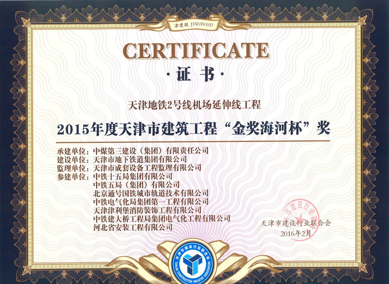 公司承接了包括寫(xiě)字樓、綜合樓、酒店、商場(chǎng)、金融保險(xiǎn)、醫(yī)療教育、飛機(jī)制造、軌道交通、工業(yè)企業(yè)等一大批具有社會(huì)影響力的工程項(xiàng)目,如:天津津匯廣場(chǎng)、天津泰達(dá)現(xiàn)代服務(wù)產(chǎn)業(yè)區(qū)G2地塊(泰達(dá)MSD-C區(qū))、濱海文化商務(wù)中心、天津高銀117大廈、天津濱海喜來(lái)登酒店、天津天河城購(gòu)物中心、天津市第二兒童醫(yī)院、空客A320、A330項(xiàng)目、新一代運(yùn)載火箭產(chǎn)業(yè)化基地項(xiàng)目、津?yàn)I快速輕軌工程、天津地鐵一、二、六號(hào)線(xiàn)工程、天津?yàn)I海國(guó)際機(jī)場(chǎng)二期擴(kuò)建工程項(xiàng)目機(jī)場(chǎng)工程T2航站樓、北京新機(jī)場(chǎng)停車(chē)樓及綜合服務(wù)樓、天津平安泰達(dá)金融中心以及天津一汽豐田汽車(chē)有限公司新能源工廠(chǎng)建設(shè)消防工程等項(xiàng)目,積累了豐富的施工及管理經(jīng)驗(yàn),多次贏(yíng)得業(yè)主的認(rèn)可和表彰,并有7項(xiàng)參建工程獲得天津市建設(shè)工程“海河杯”獎(jiǎng)、有6項(xiàng)參建工程獲得天津市建設(shè)工程“金獎(jiǎng)海河杯”獎(jiǎng)、有3項(xiàng)參建工程獲得“國(guó)家優(yōu)質(zhì)工程獎(jiǎng)”、有15項(xiàng)參建工程獲得中國(guó)建設(shè)工程“魯班獎(jiǎng)”、有2項(xiàng)參建工程獲得“中國(guó)安裝之星”優(yōu)質(zhì)獎(jiǎng)、有1項(xiàng)參建工程獲得北京市建筑長(zhǎng)城杯工程金質(zhì)獎(jiǎng)。同時(shí)被中國(guó)消防協(xié)會(huì)評(píng)定為AAA信用等級(jí)企業(yè)。公司以卓越的工程品質(zhì)和全方位的服務(wù)得到了社會(huì)各界的好評(píng),在同行業(yè)中享有較高的信譽(yù)。