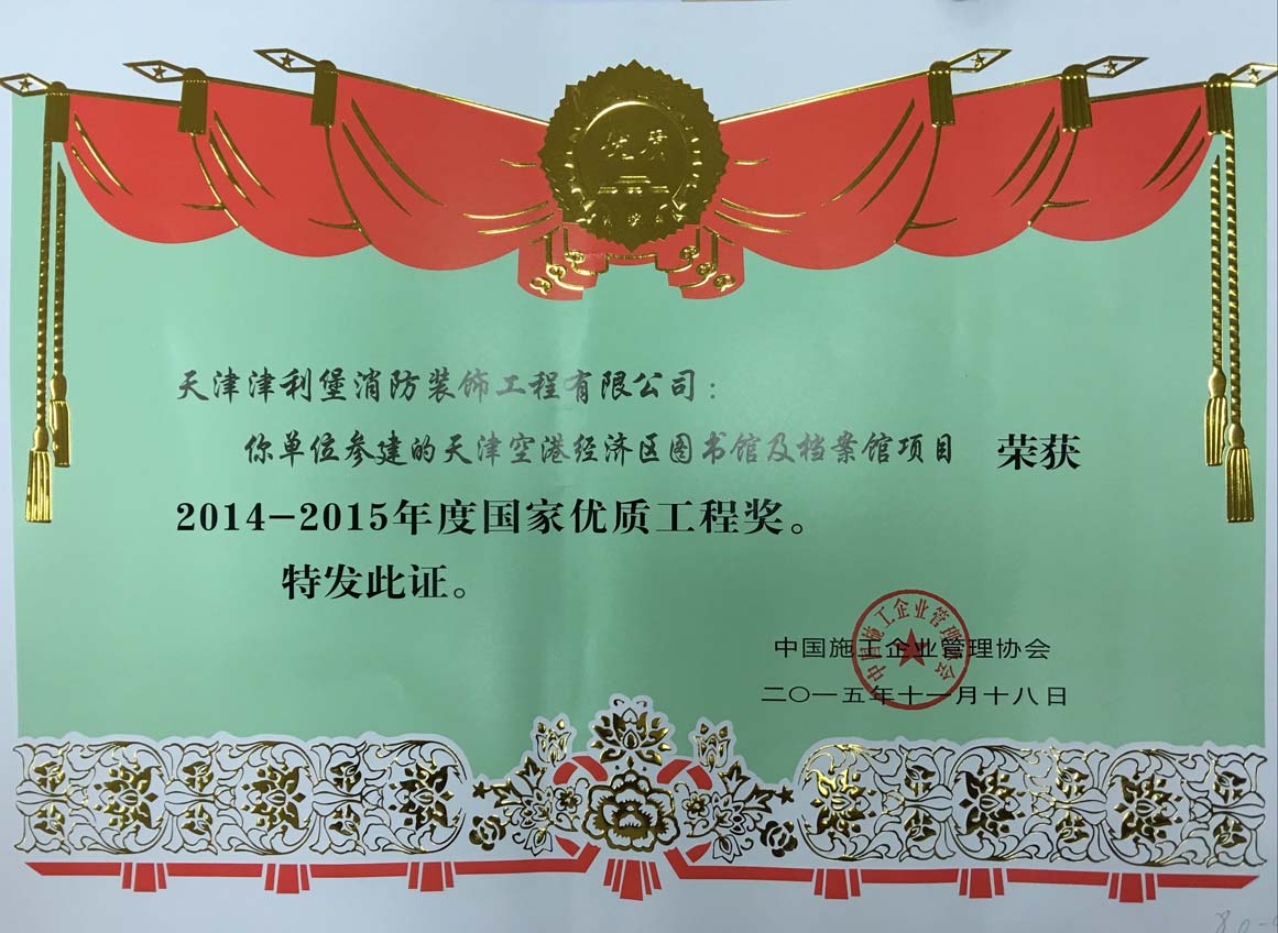 天津空港經(jīng)濟(jì)區(qū)圖書館及檔案館項(xiàng)目榮獲“國(guó)家優(yōu)質(zhì)獎(jiǎng)”榮譽(yù)稱號(hào)